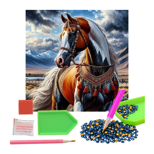 MOZAIKA DIAMENTOWA - KOŃ W INDIAŃSKIEJ UPRZĘŻY