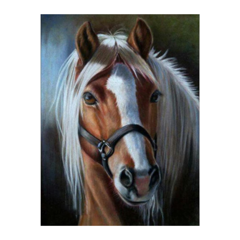 MOZAIKA DIAMENTOWA - KOŃ Z JASNĄ GRZYWĄ PORTRET