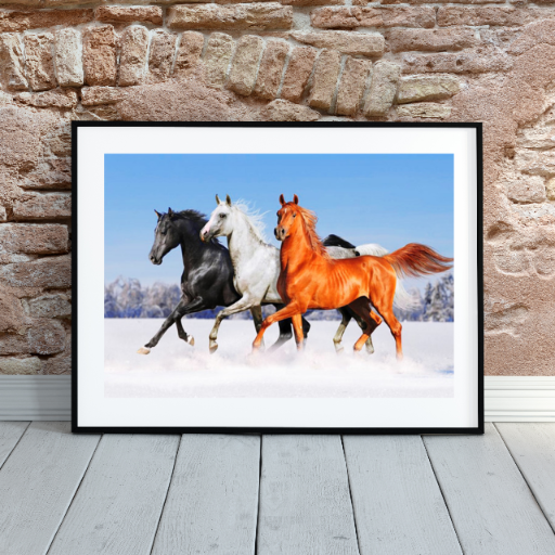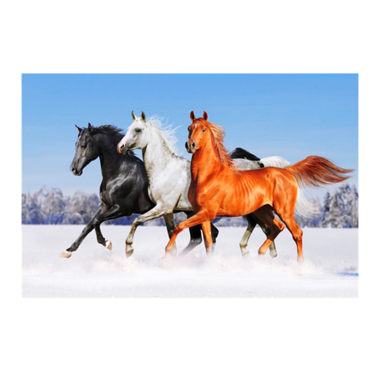 MOZAIKA DIAMENTOWA -KONIE 3 RUMAKI O RÓŻNEJ MAŚCI ZIMĄ 40X30