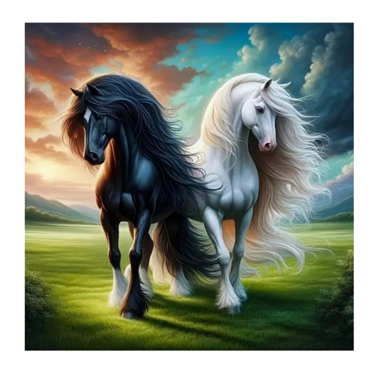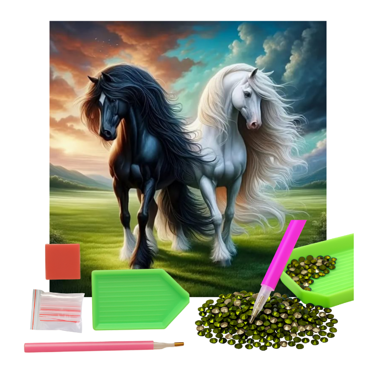 MOZAIKA DIAMENTOWA - KONIE BIAŁY-CZARNY DZIEŃ-NOC