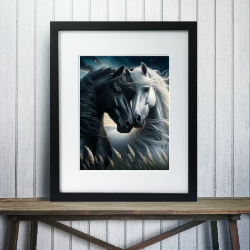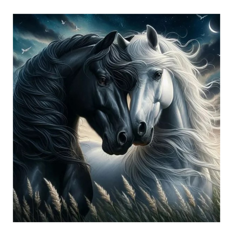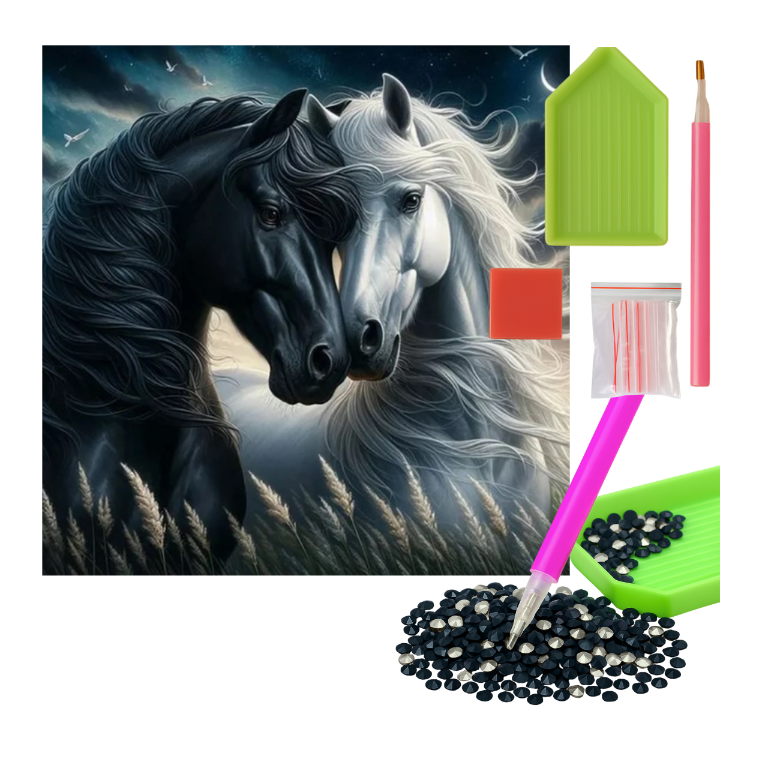 MOZAIKA DIAMENTOWA - KONIE BIAŁY I CZARNY W ZBOŻU