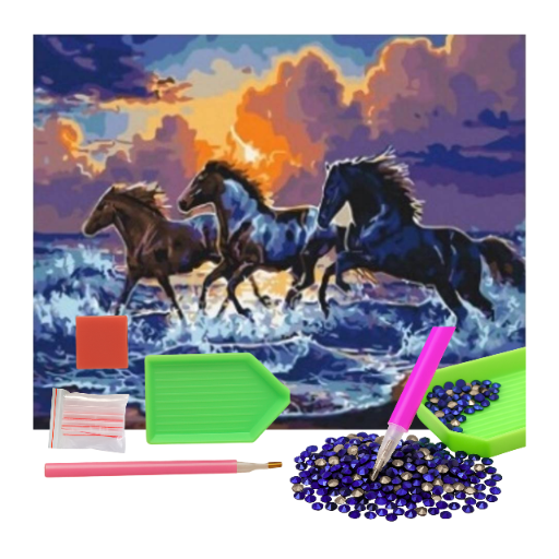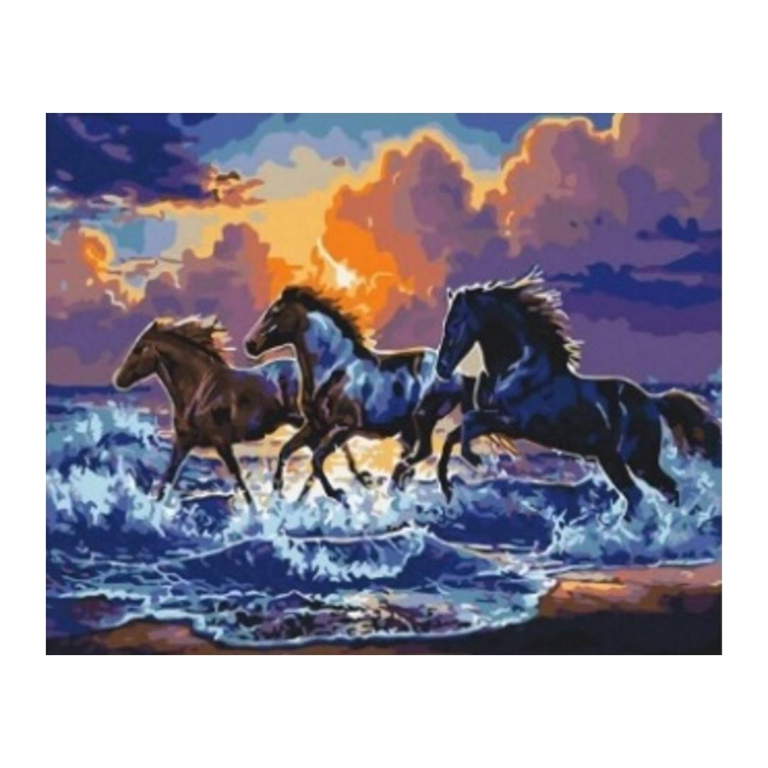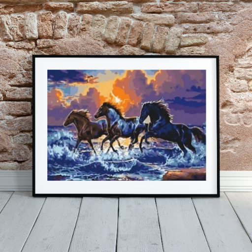 MOZAIKA DIAMENTOWA - KONIE CZARNE GALOP W MORZU