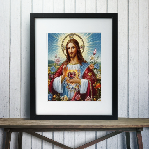 MOZAIKA DIAMENTOWA - OBRAZKI ŚWIĘTE IKONA JEZUS W KWIATACH