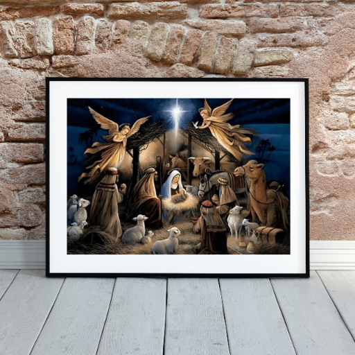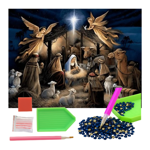 MOZAIKA DIAMENTOWA - OBRAZKI ŚWIĘTE STAJENKA NOCĄ PASTERKA