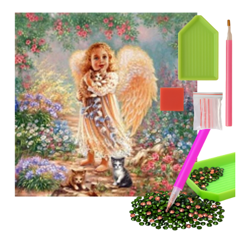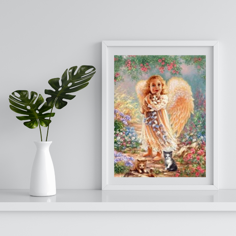 MOZAIKA DIAMENTOWA - ŚWIĘTE OBRAZKI ANIOŁEK Z KOTKAMI