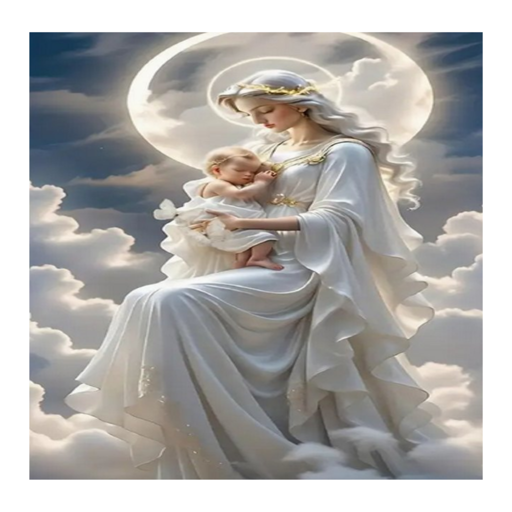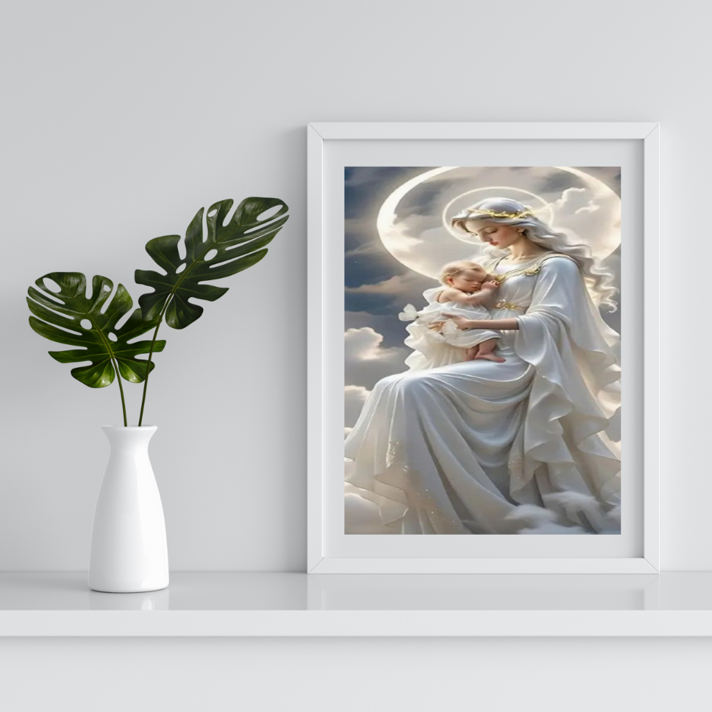 MOZAIKA DIAMENTOWA - ŚWIĘTE OBRAZKI MATKA BOSKA Z DZIECĄTKIEM W OBŁOKACH