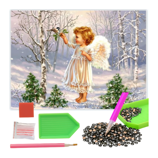 MOZAIKA DIAMENTOWA - ŚWIĘTE OBRAZKI ZIMA ZIMOWY ANIOŁEK