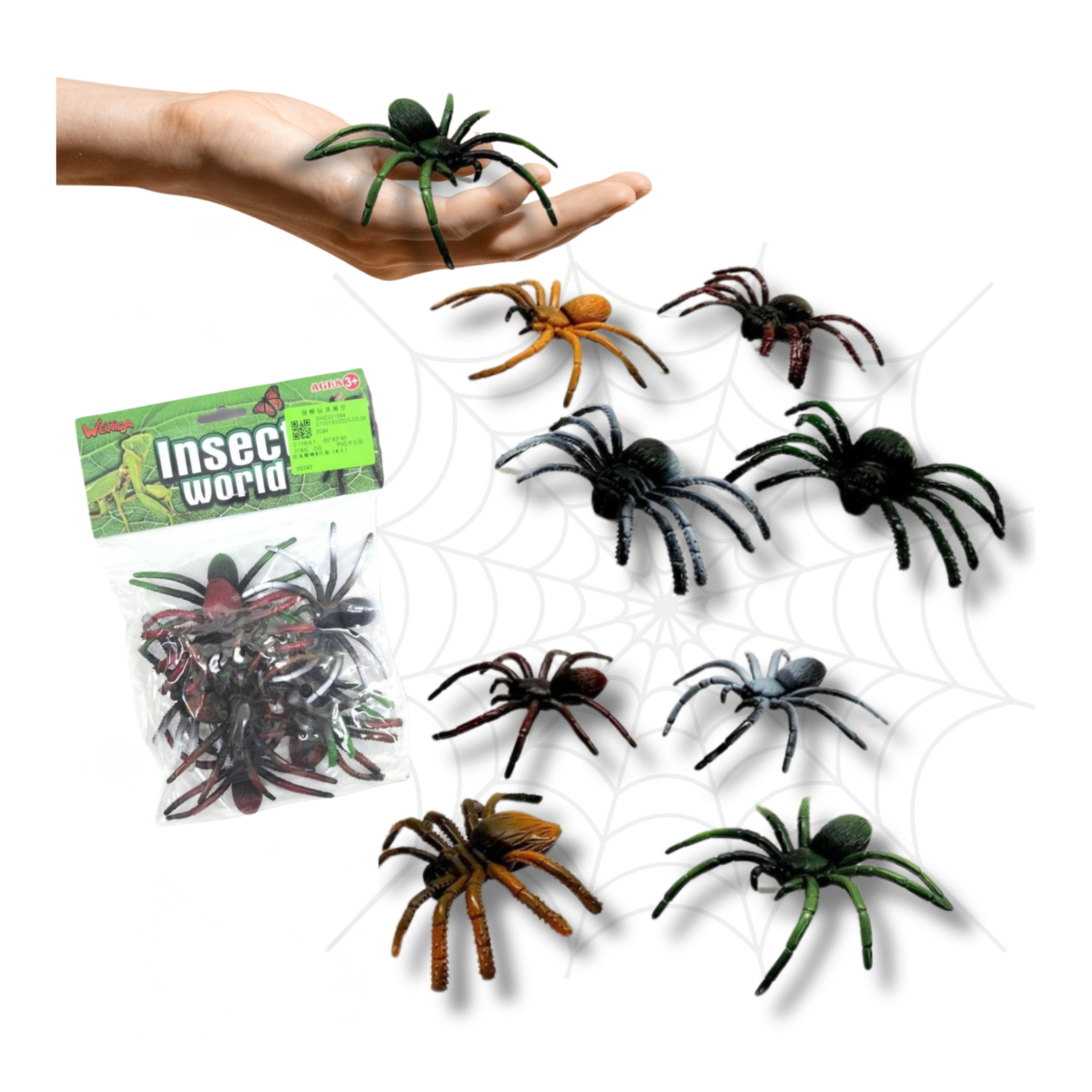 ⭐Zestaw plastikowych pająków – 8 szt. (9×9×3 cm)⭐