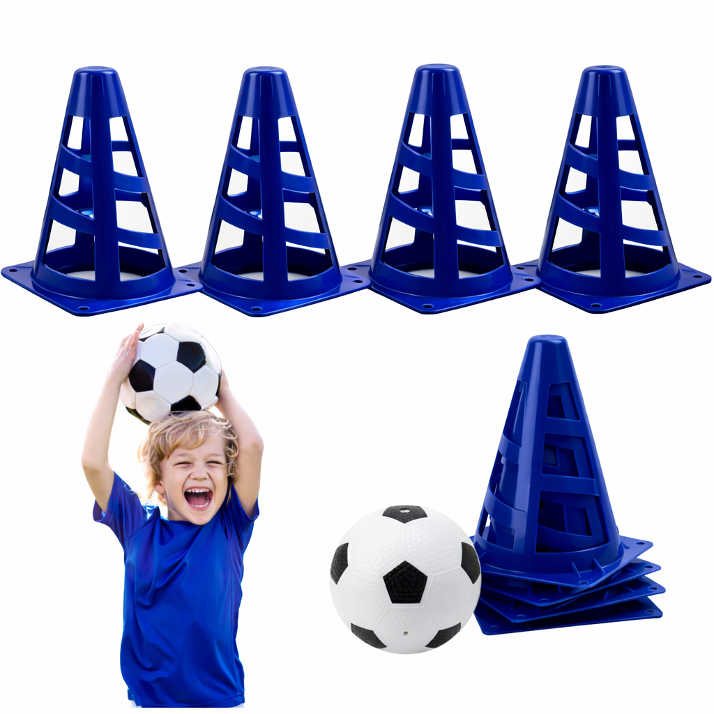 Pachołki treningowe piłkarskie 4 sztuki niebieskie z piłką zestaw dla dzieci