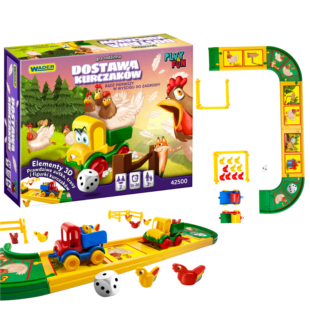Dostawa Kurczaków to gra dla młodszych (3+), starszych, dziewczyn i chłopców, duża dawka śmiechu i pozytywnej energii dla całej rodziny! W tej grze liczy się nie tylko szczęście, ale również zwinność i strategia!