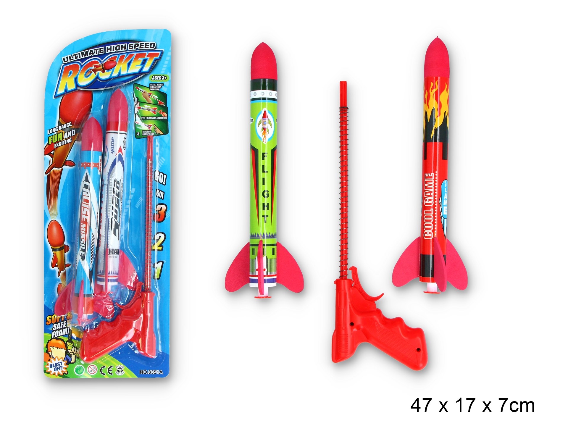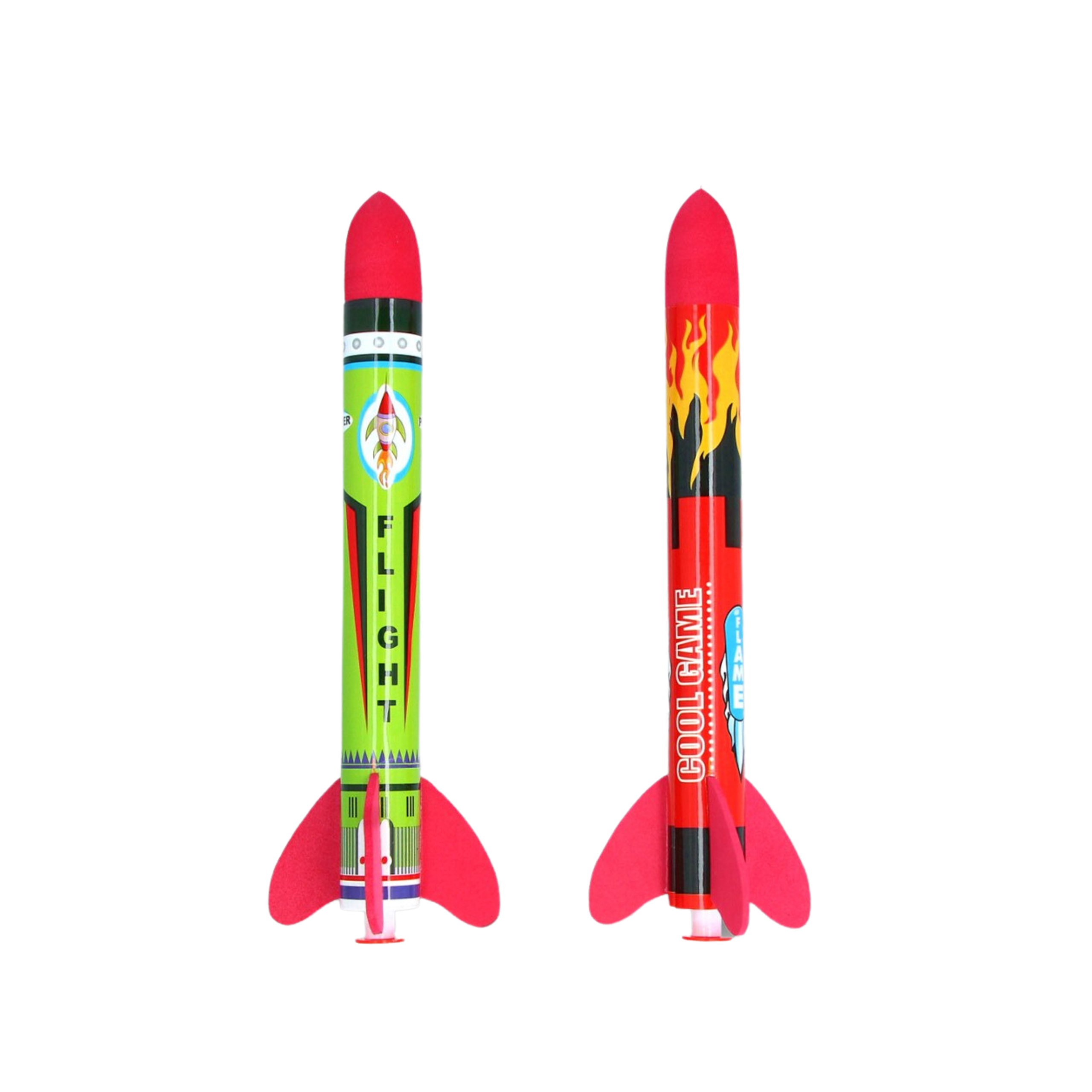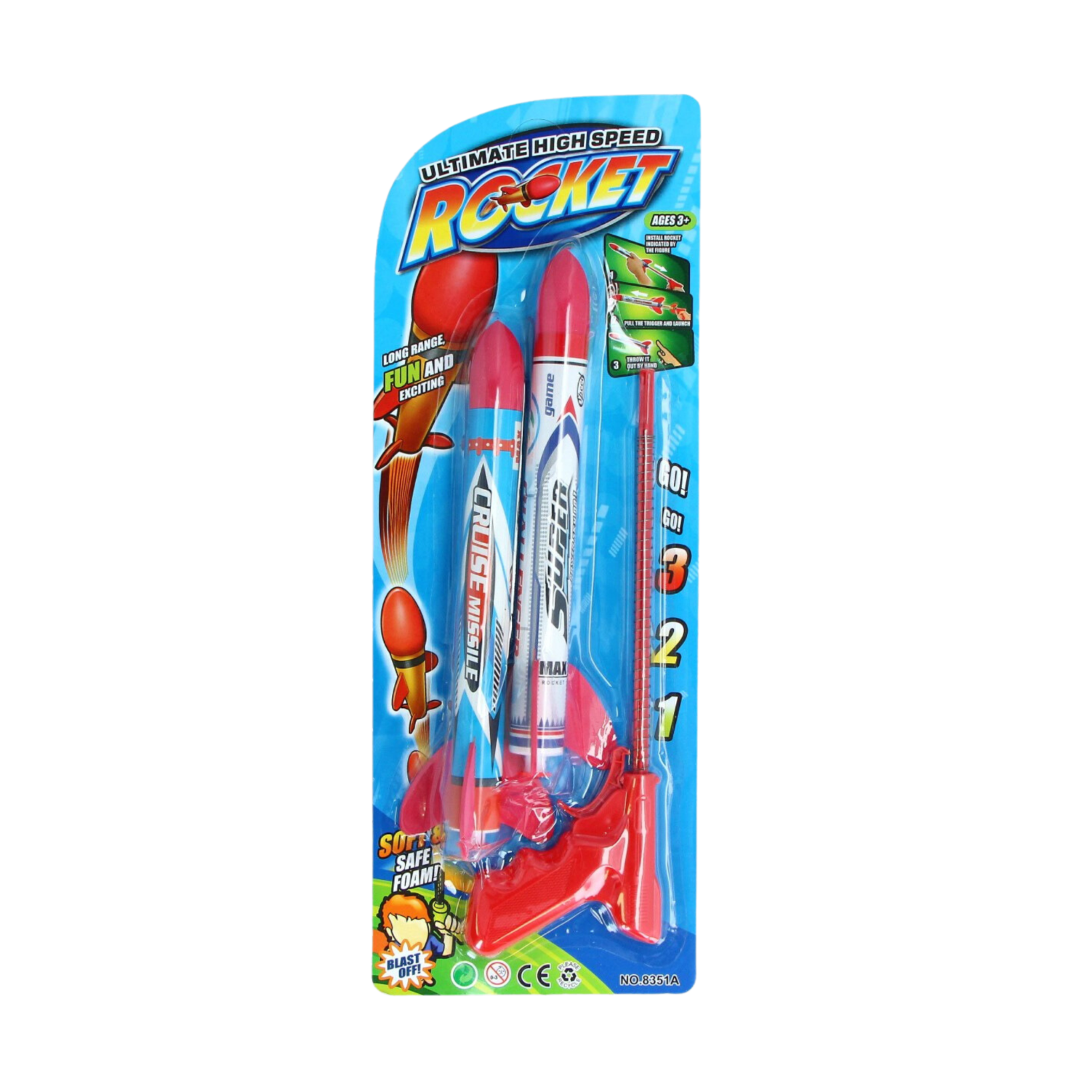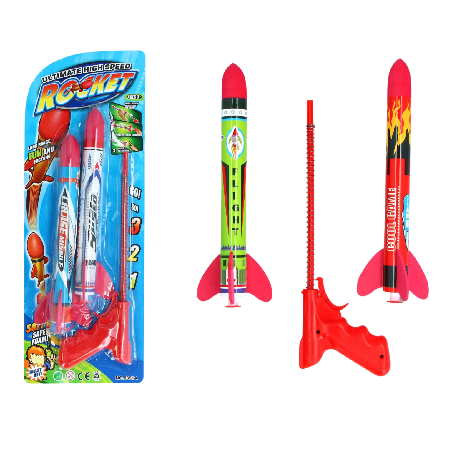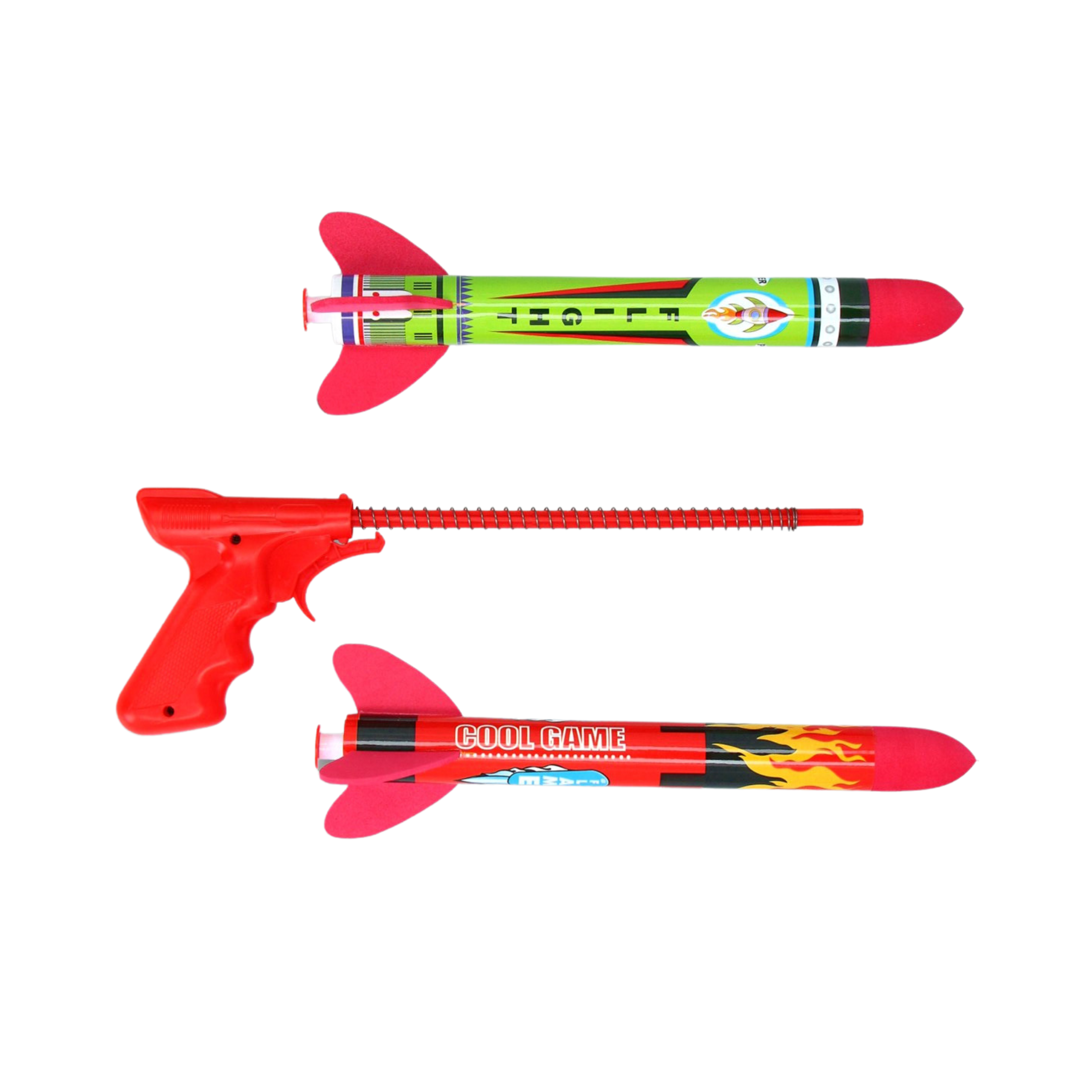 Idealna zabawka do wesołej i bezpiecznej rozrywki na świeżym powietrzu. W zestawie znajdziesz 2 rakiety oraz pistolet, który pozwoli Ci wystrzelić je w powietrze. Nasz pistolet z wytrzutnią jest łatwy w obsłudze - wystarczy włożyć rakietę do wytrzutni, naciągną a następnie nacisnąć spust i zobaczyć, jak rakieta wzlatuje w górę. Przygotuj się na niekończącą się frajdę i adrenalinną rozrywkę dzięki naszemu pistoletowi z wytrzutnią na rakiety piankowe!