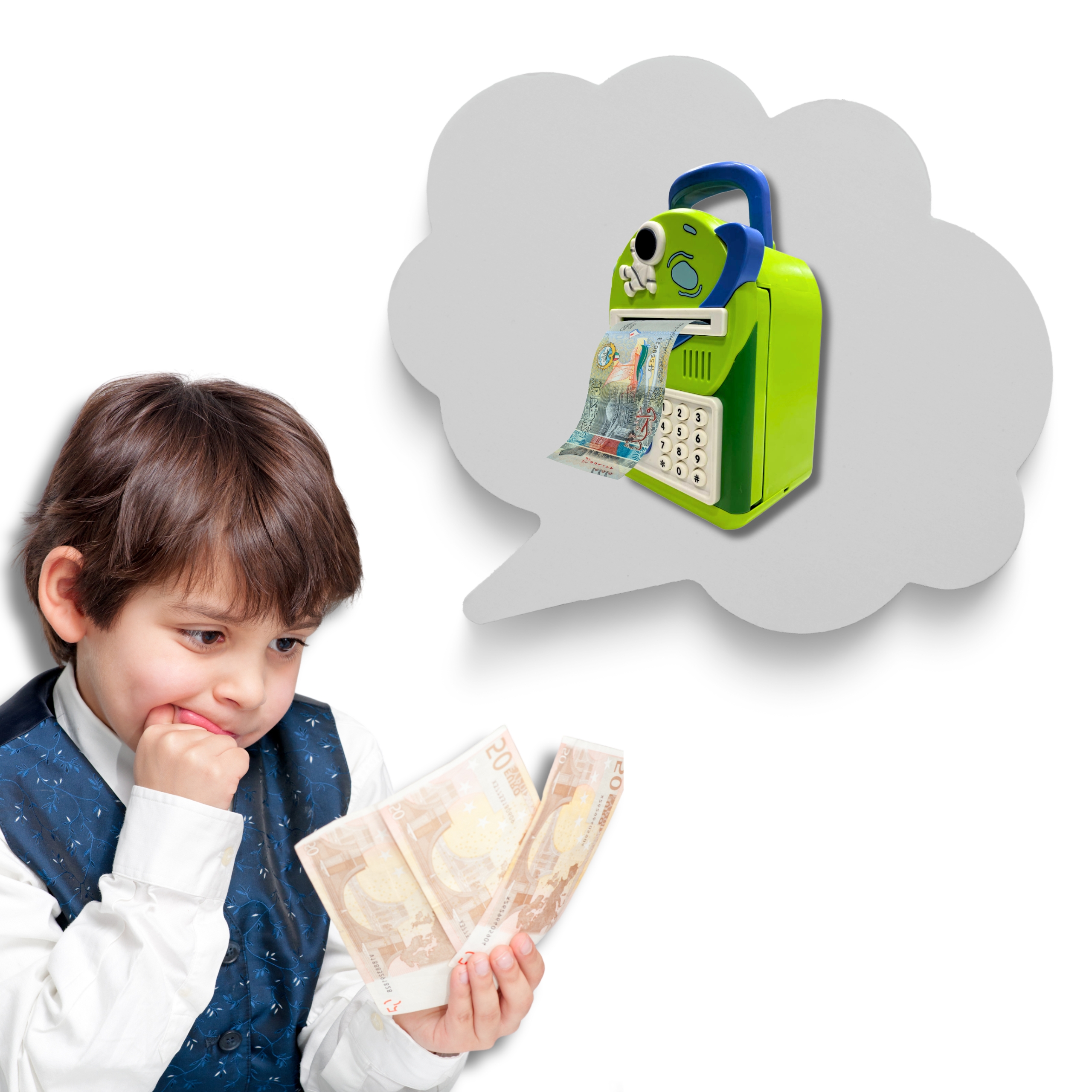 - Typ produktu: elektroniczna skarbonka dla dzieci, sejf dziecięcy, bankomat zabawkowy