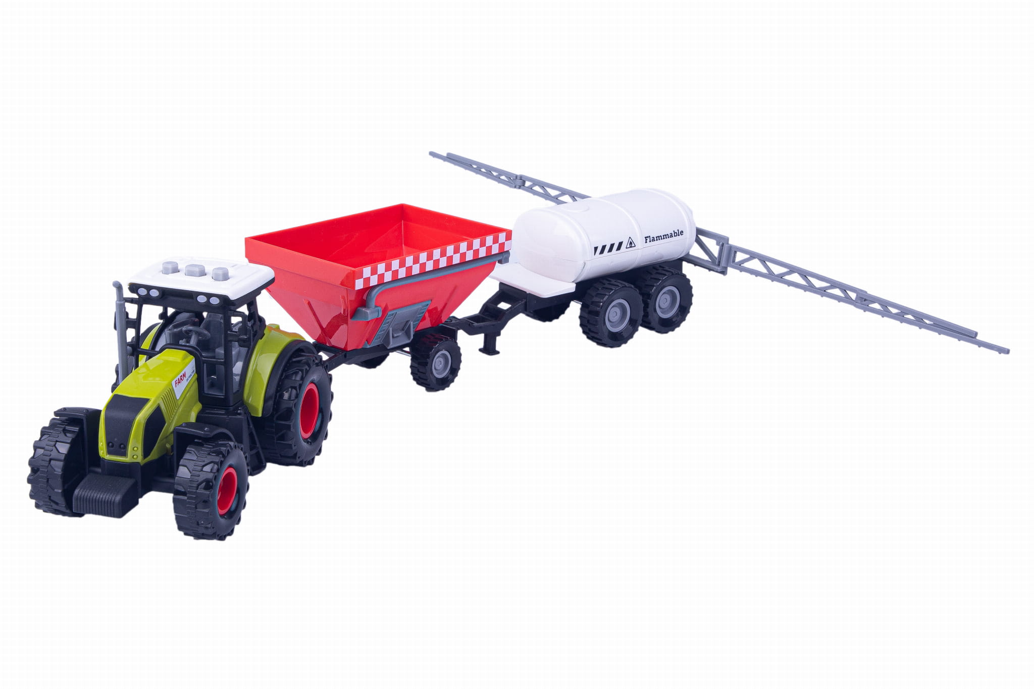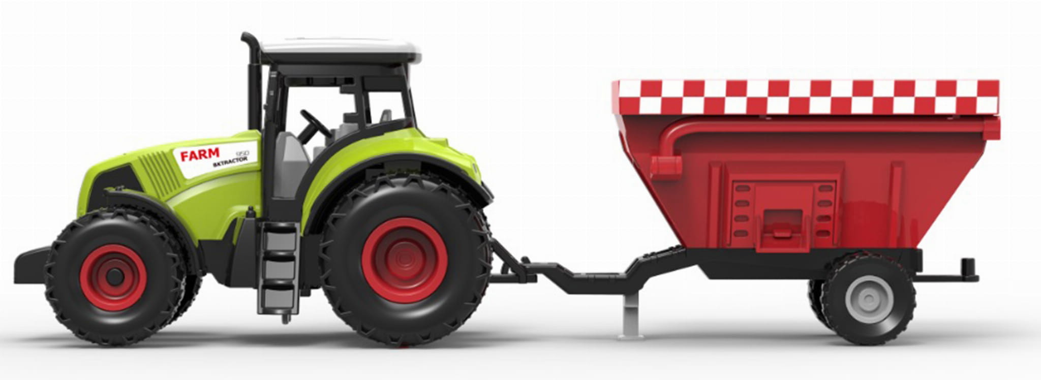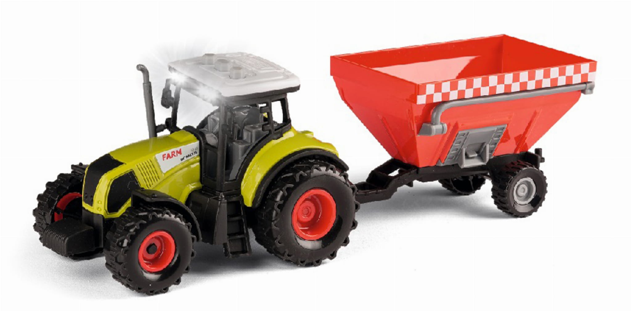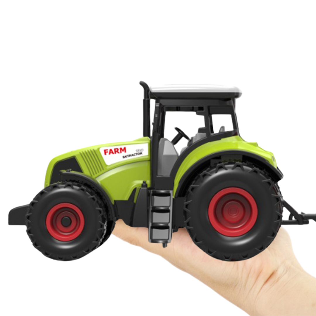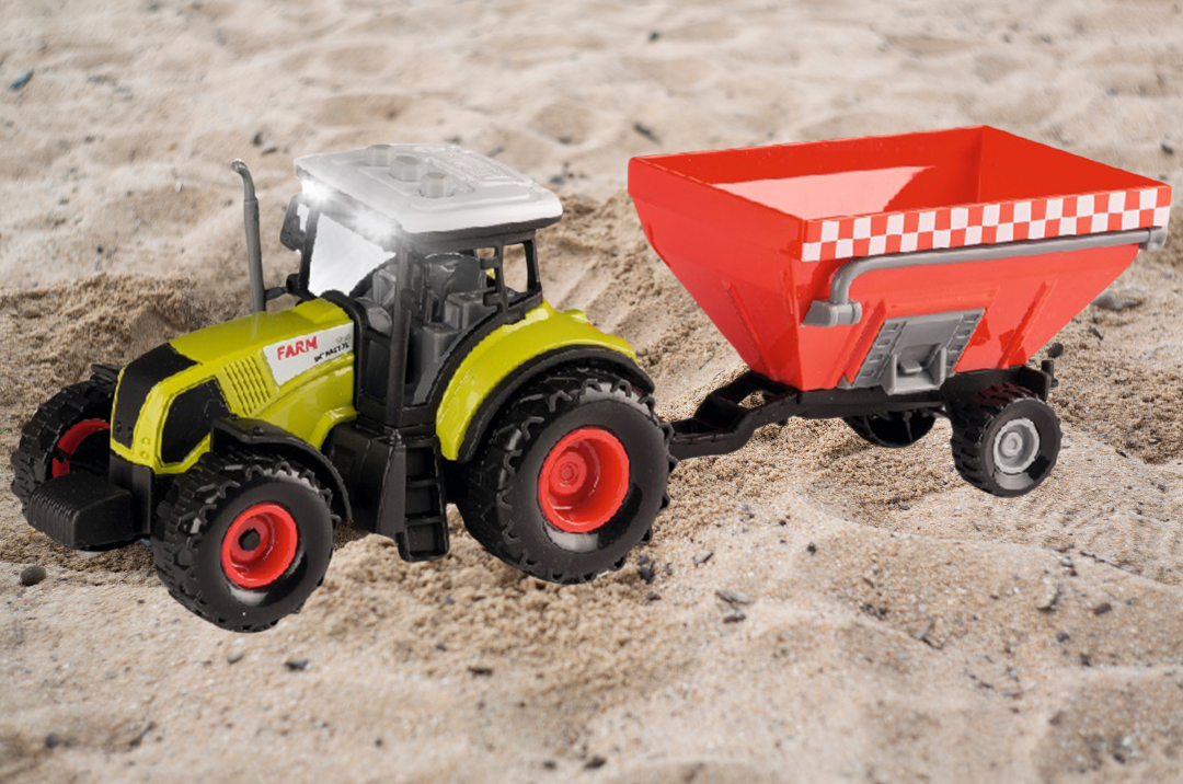 - Długość ciągnika z przyczepą: Około 34-36 cm - zapewniająca realistyczny wygląd i uczucie podczas zabawy na farmie.