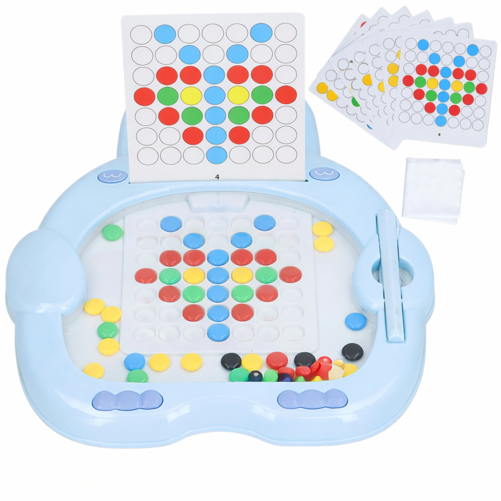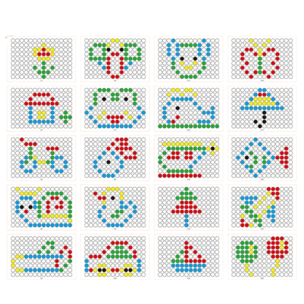 Ta mozaika dla dzieci pomaga ćwiczyć koordynację ręka-oko, chwyt, skupienie oraz logiczne myślenie. Układanie kolorowych wzorów to nie tylko przyjemność, ale również forma treningu małej motoryki, tak ważnej w codziennym rozwoju dziecka. Zabawa z planszą może wspierać naukę kolorów, pierwsze próby liczenia oraz tworzenie prostych kompozycji według własnego pomysłu.