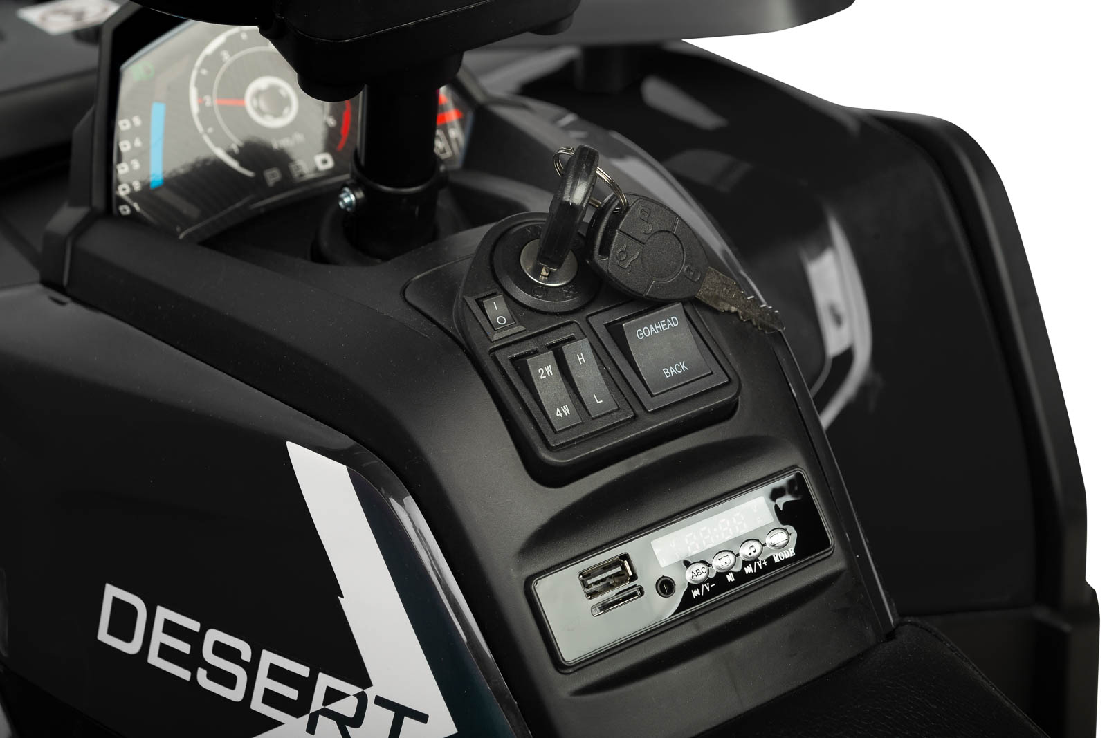 Komfort jazdy zwiększają przednie i tylne amortyzatory oraz szerokie siedzisko z oparciem. O bezpieczeństwo dbają wolny start, automatyczny hamulec i możliwość zdalnego sterowania za pomocą pilota. Pojazd oferuje również jazdę do przodu i do tyłu oraz dwa poziomy prędkości, dzięki czemu może rosnąć razem z umiejętnościami dziecka.