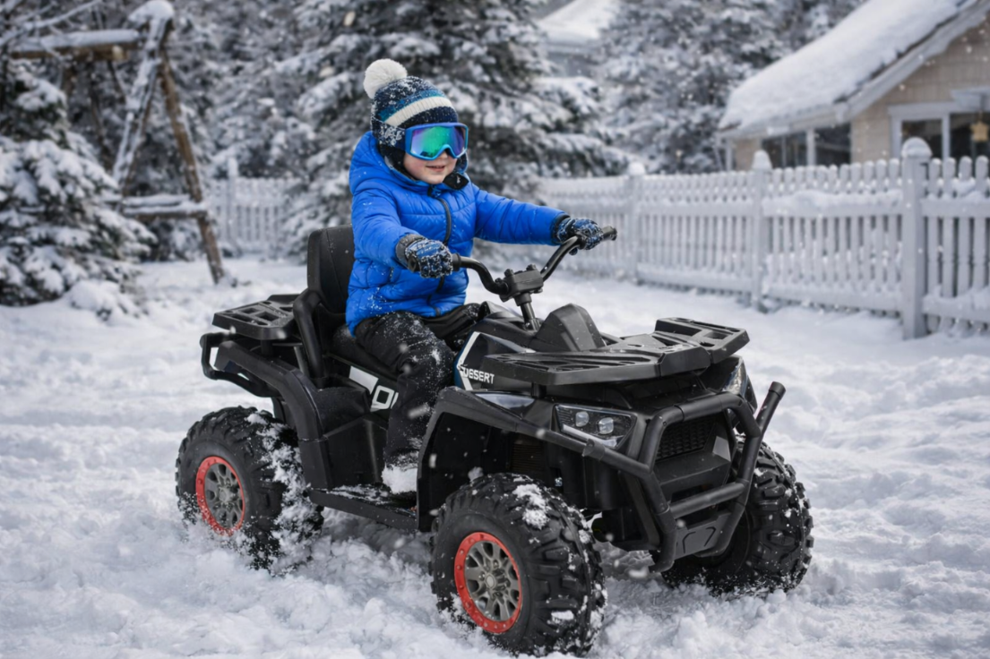 TOYZ Terra to bardzo dobrze wyposażony quad dziecięcy, który łączy mocny napęd, terenowy wygląd i rozwiązania zwiększające bezpieczeństwo. Dzięki zmianie trybu napędu 4x2 i 4x4, dużym kołom EVA, amortyzacji oraz pilotowi dla rodzica model sprawdza się zarówno podczas spokojniejszej jazdy, jak i bardziej aktywnej zabawy.