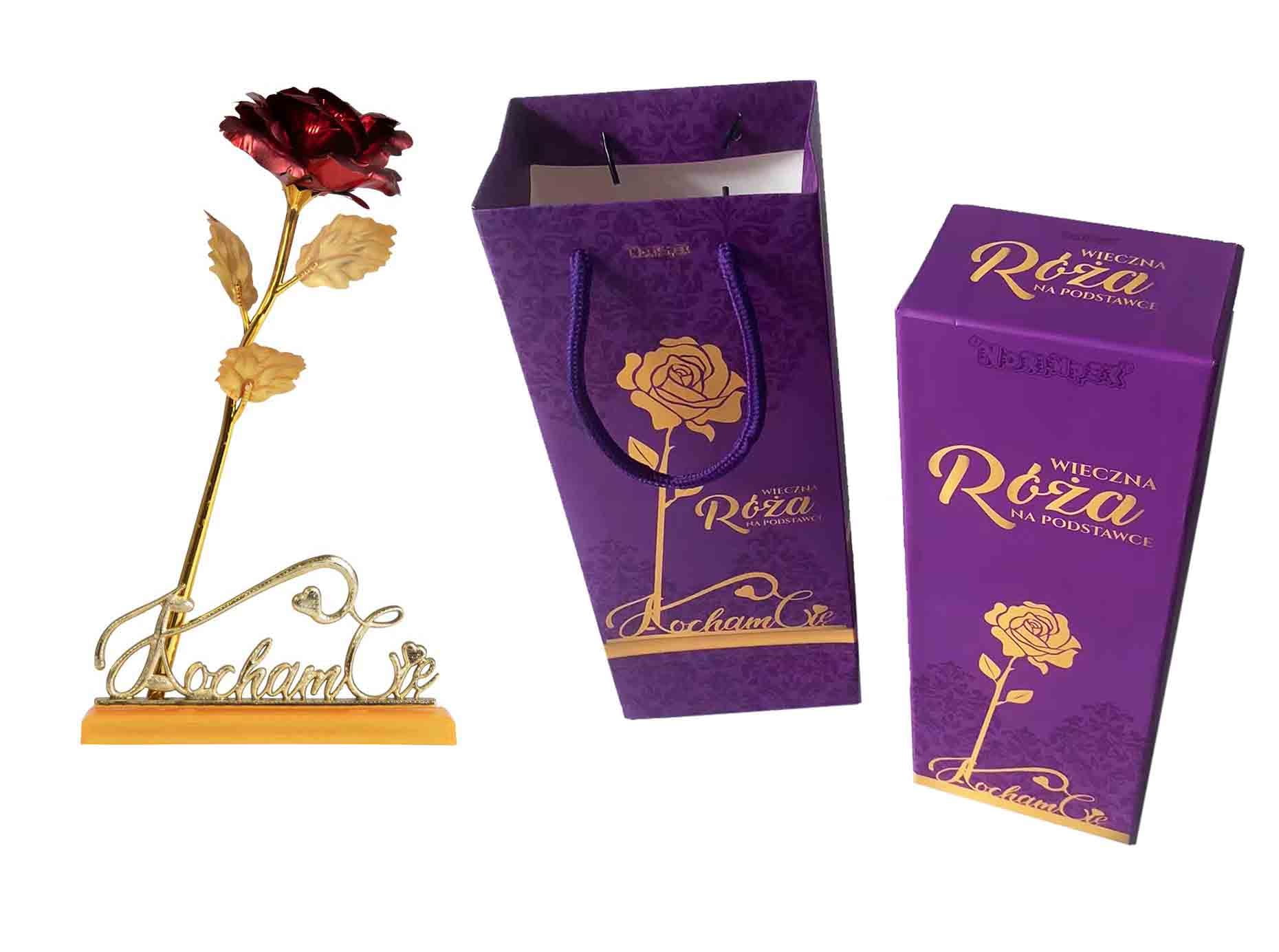 WIECZNA RÓŻA Z PODSTAWKĄ ""KOCHAM CIĘ"" - IDEALNY PREZENT NA WALENTYNKI I NIE TYLKO!