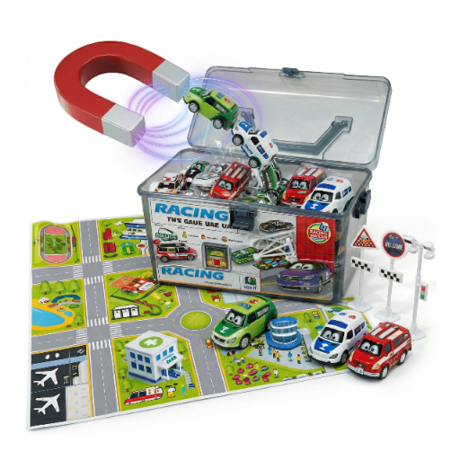 To zestaw, w którym liczy się nie tylko liczba elementów, ale również funkcjonalność. Kuferek ułatwia przechowywanie i przenoszenie, dlatego wszystkie samochodziki są zawsze w jednym miejscu. Taki format docenią zarówno dzieci, jak i rodzice, którzy chcą łatwo utrzymać porządek po skończonej zabawie.