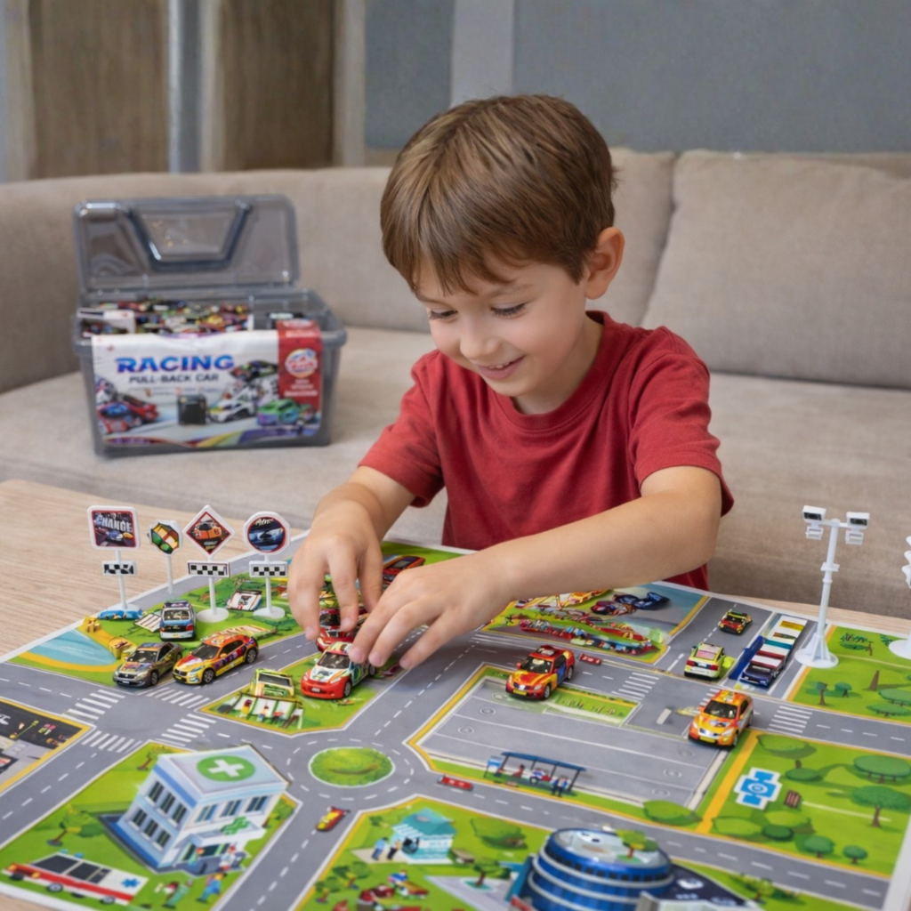 Różne kolory i style pojazdów sprawiają, że dziecko może odgrywać wiele scenariuszy – od wyścigów, przez przejazdy po mieście, aż po własne motoryzacyjne przygody.